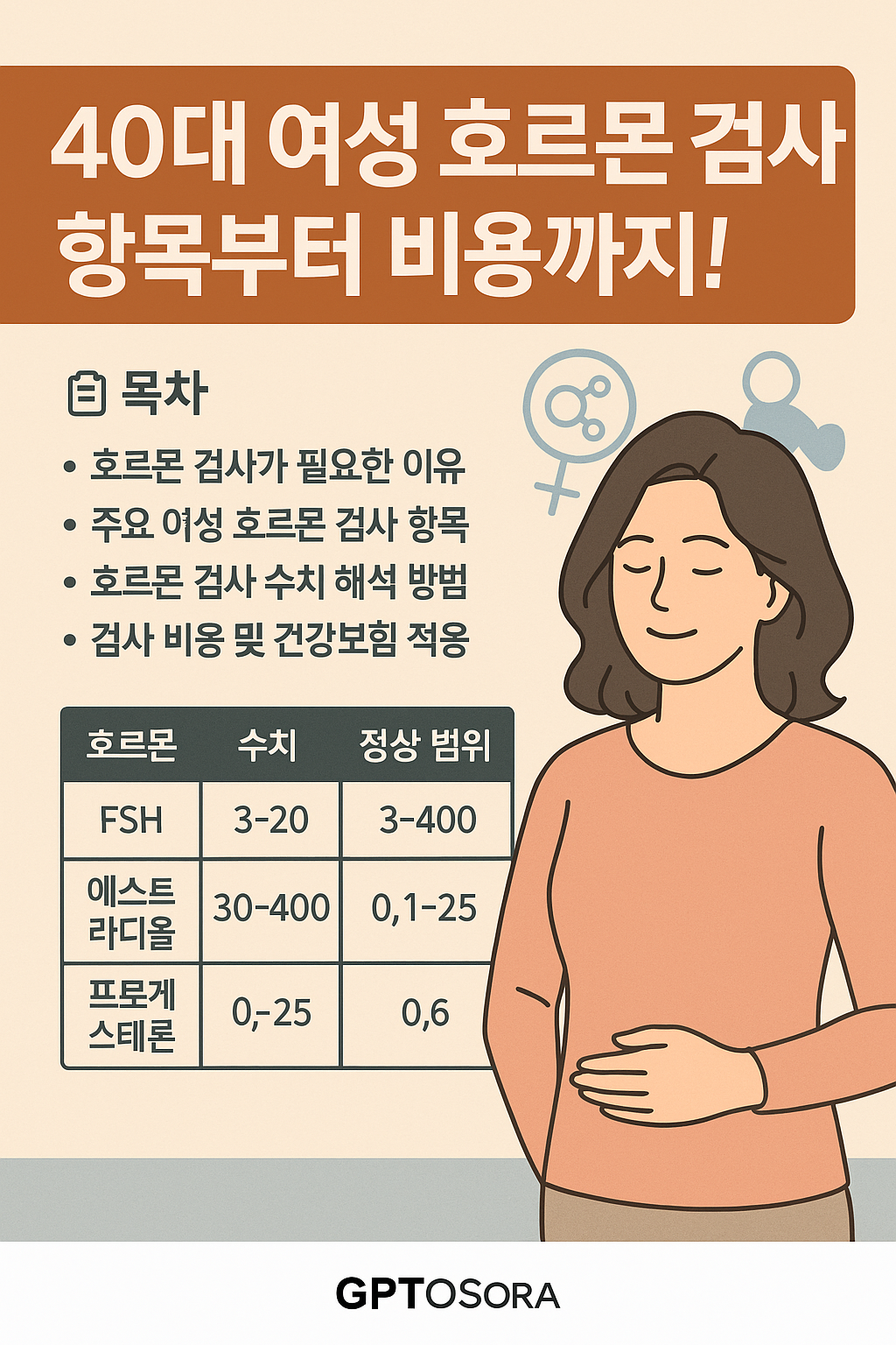 40대 여성 호르몬 검사 항목부터 비용까지! FSH, 에스트라디올, 프로게스테론 수치와 정상 범위를 자세히 설명하고 갱년기 대비 건강관리 방법을 안내합니다.